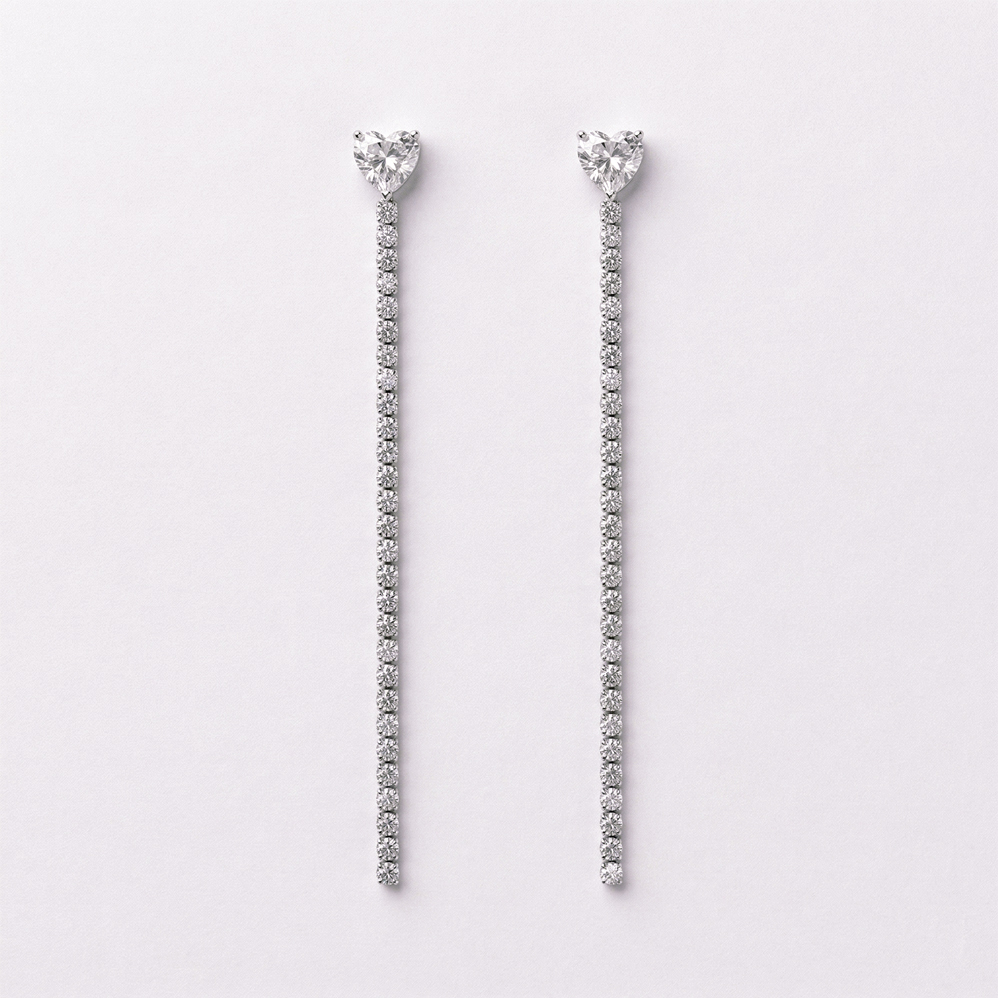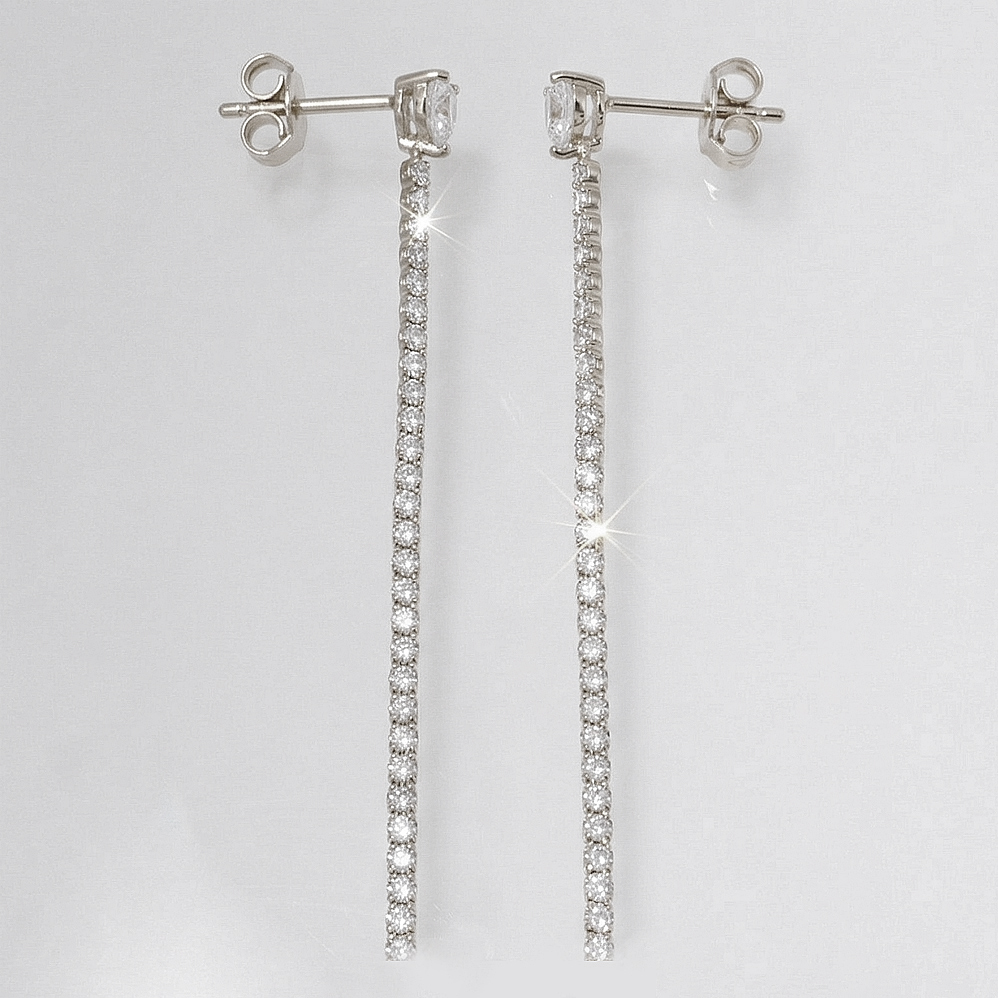 Dlouhé štrasové náušnice z chirurgické oceli. Celková délka 7,5 cm.