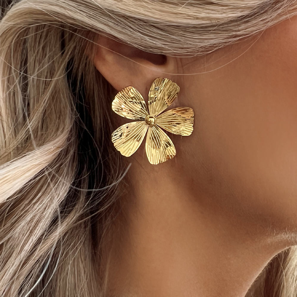 Náušnice květy - pecky z chirurgické oceli. Náušnice o rozměru 3,5 cm., dřík přímo do uší. Šperky z chirurgické oceli jsou hypoalergenní, barevně stálé, odolné vůči oděru a oxidaci.