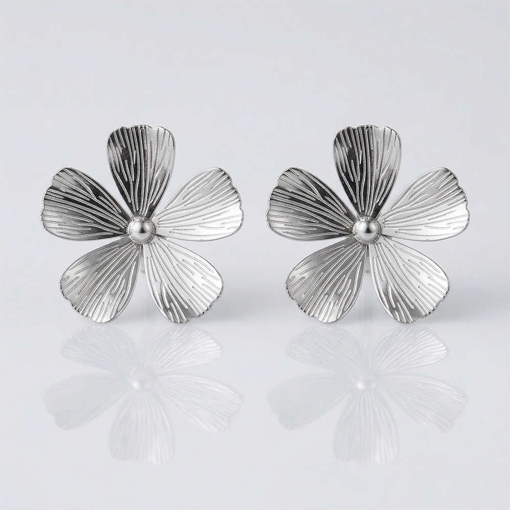 Náušnice květy - pecky z pozlacené chirurgické oceli. Náušnice o rozměru 3,5 cm., dřík přímo do uší. Šperky z chirurgické oceli jsou hypoalergenní, barevně stálé, odolné vůči oděru a oxidaci.