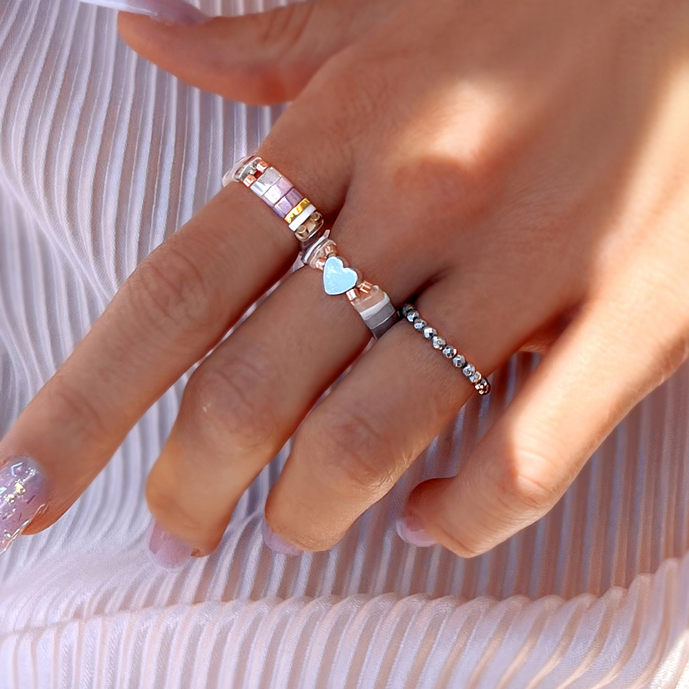 Krásný prstýnek je sestavený z japonských, skleněných korálků Miyuki Tila navlečených na gumičce (lycra) pro pohodlné nošení.