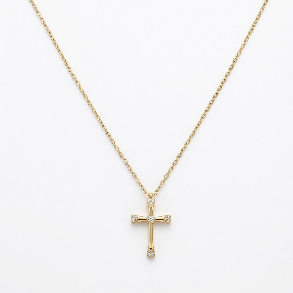 Luxusní řetízek s přívěskem křížek z pozlacené chirurgické oceli se vsazenými zirkony v dárkové krabičce.