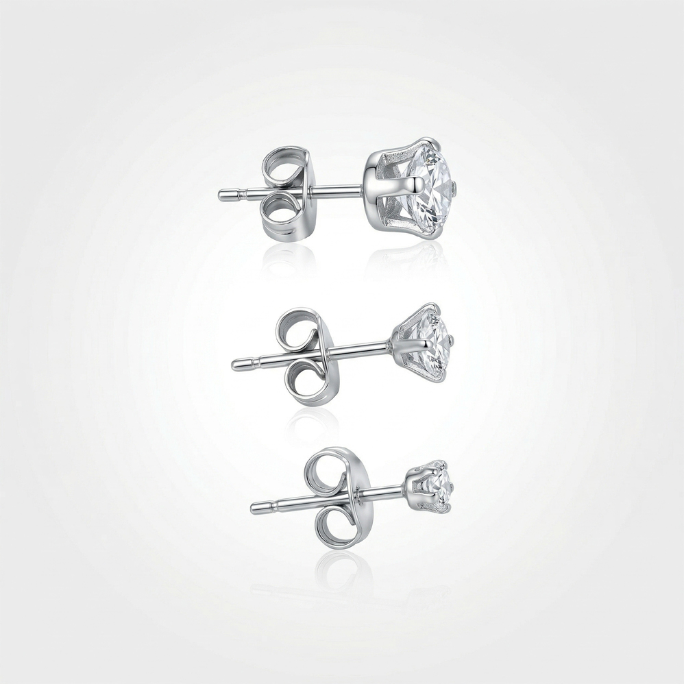 Set náušnic se zirkony z chirurgické oceli. Set na jedno ucho - 3 ks náušnic.