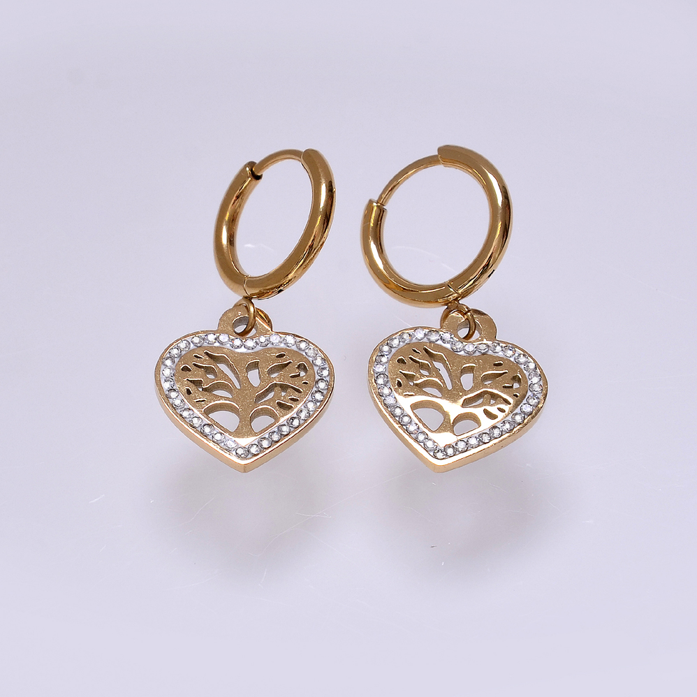 Srdíčkové náušnice se stromem života z pozlacené chirurgické oceli. Srdíčko o rozměru 1,5 cm., celková délka 3 cm.
